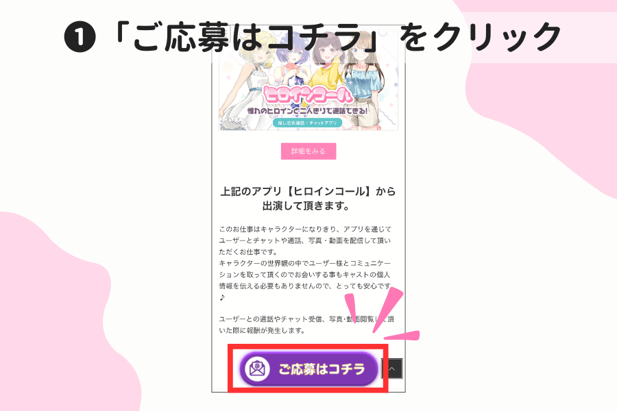 - 公式サイトから「ご応募はコチラ」をクリックする