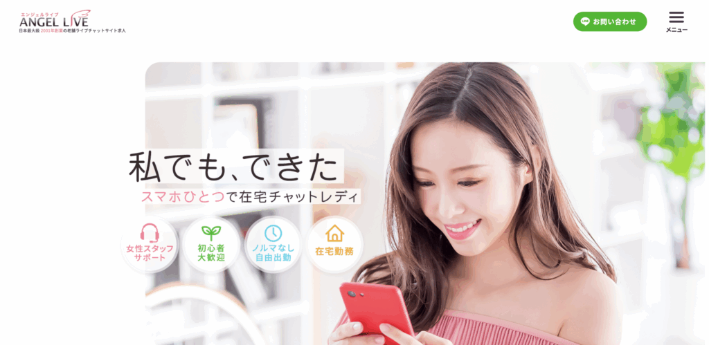 アダルトジャンルに完全特化しているため、短時間で高収入を狙いやすく、チャットレディ初心者にも優しいサポート体制が整っているのが大きな特徴です。