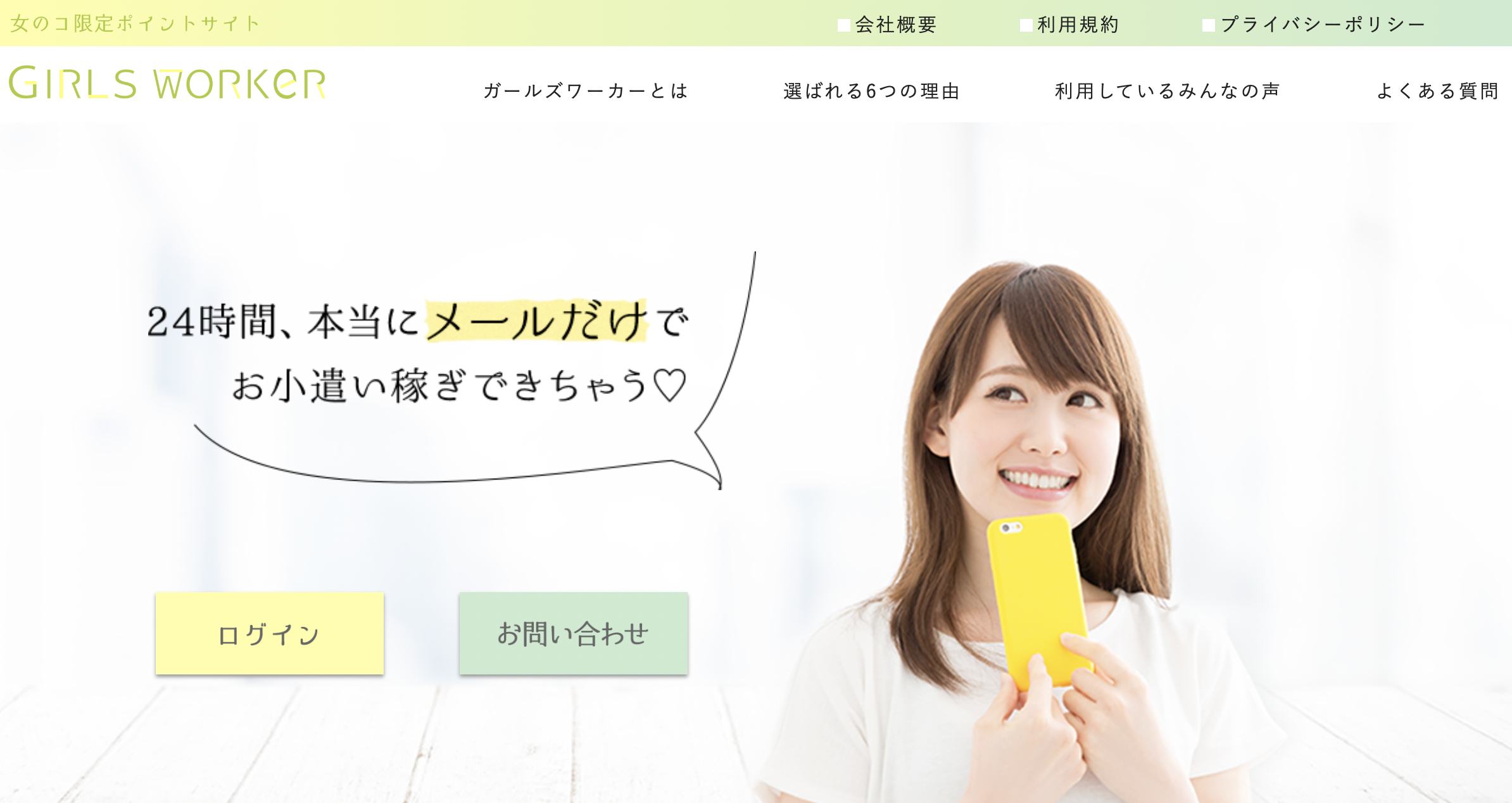ガールズワーカー(通称:ガルワカ)とは、女性がスマホを使って、男性とメールや掲示板でやり取りし、報酬を得られる在宅型の副業サービスです。